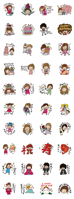 お誕生日など色々なお祝いに使ってくださいね。missaのスタンプです。missa(ミサ) より発売