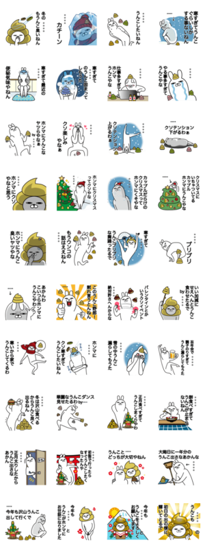 関西弁大阪弁トレンディうさぎ冬うんこ正月 スタンプ画像一覧