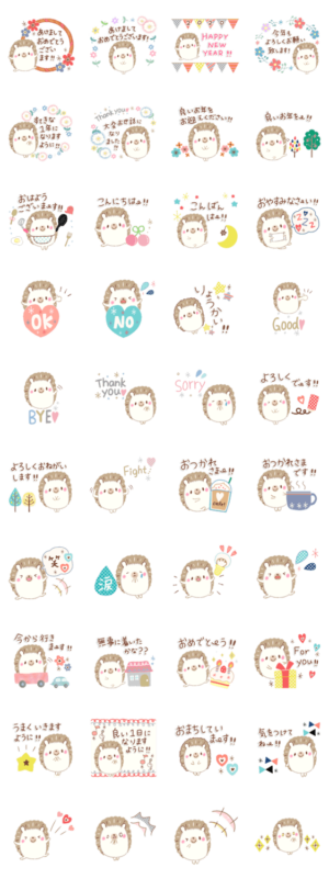 北欧❤️年末年始と毎日使える❤️はりねずみ スタンプ画像一覧