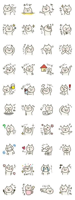 猫(ねこ、ネコ)さんのらくがきがかわいいスタンプになりました★(文字入り。2nd message version)ミミンヌモコ より発売