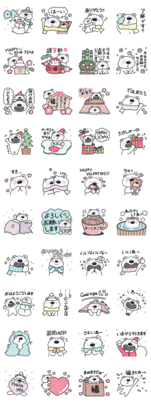 しろくま。くまくん。の冬スタンプ! クリスマス/お正月/バレンタイン/節分/日常使いにも 冬の間たっぷり使えるスタンプです!