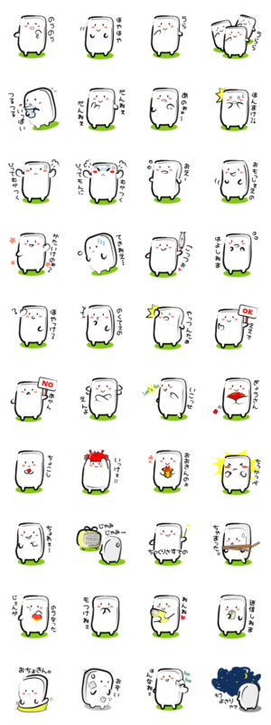 北陸は福井県の方言スタンプです。あの福井銘菓「羽二重餅」をイメージしたキャラクターが福井弁をしゃべるでの~。