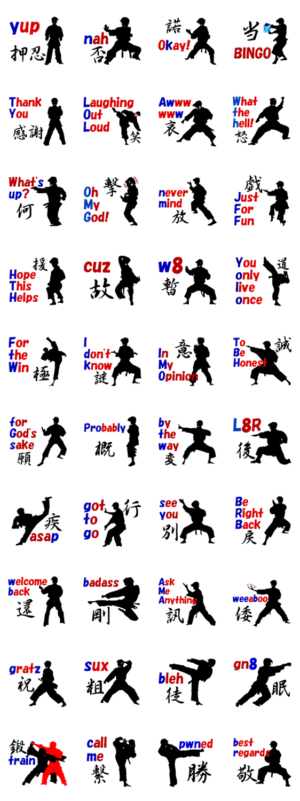 空手家の日常の英語版です。英語(ネット語を含む)の意味を漢字で表現しました。BABOOmama より発売