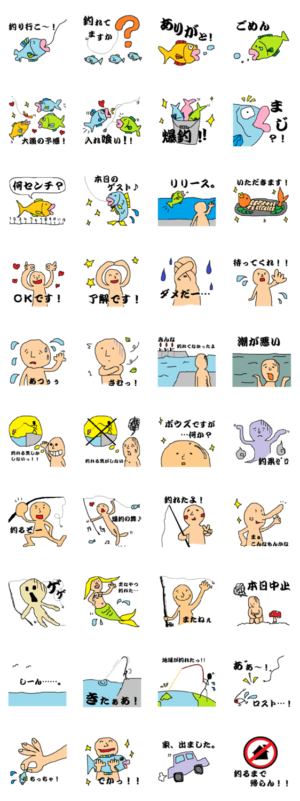 釣りを愛する皆様、釣りで使えるスタンプです。ぜひお試しください。爆釣間違いなし!(釣れなかった時の言い訳スタンプ入り)もみじ より発売