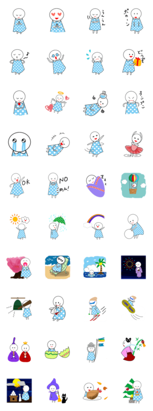 てるてる坊主が魔女の力で人間になりました。いままでできなかった日常、イベントをたくさん楽しみます。クリスマス、節句、七夕など季節のスタンプもあります。ねこのしっぽ より発売
