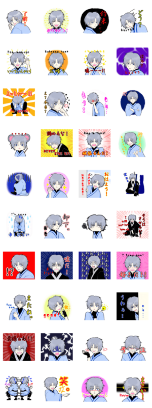 侍の美少年スタンプ。明治時代の訳アリおぼっちゃま、木良刀志郎君があなたの代わりに気持ちを伝えてくれます!だって刀志郎君は、あなたの味方だから!