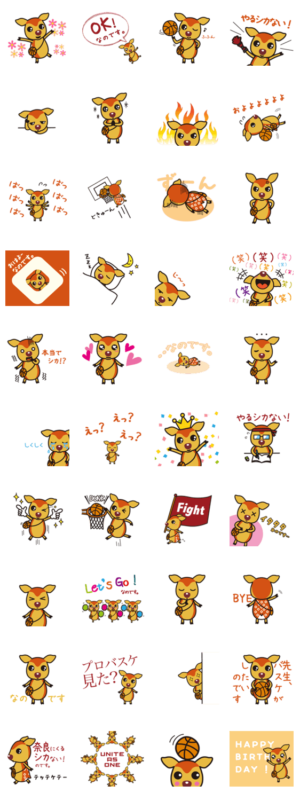 シカッチェなのです。奈良県のプロバスケットボールチーム「バンビシャス奈良」のチームキャラクターなのです♪シカッチェのスタンプでトークを盛り上げるシカない!バンビシャス奈良 より発売