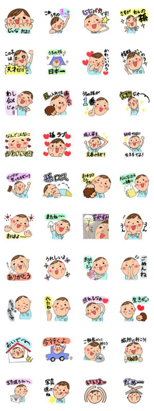 孫のことを愛してやまないじいじのためのスタンプ。孫を自慢するときや、家族とのコミュニケーションに。使いこなせば注目のおじいちゃんになれるかも【孫好きじいじ①】