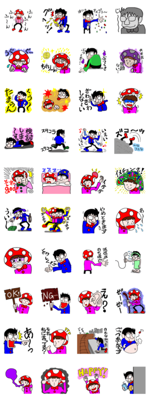 オリジナルキャラクター、セミ君とキノコ君のゆるゆるスタンプ。青木竜也 より発売
