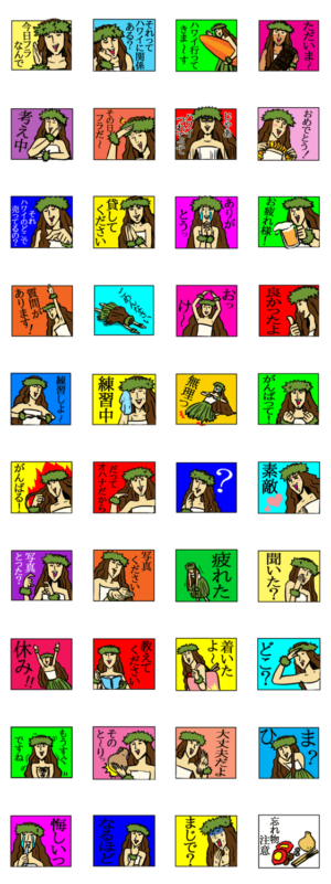フラダンスを習っている人、ハワイが好きな人が使えるスタンプを作りました。マロハ より発売