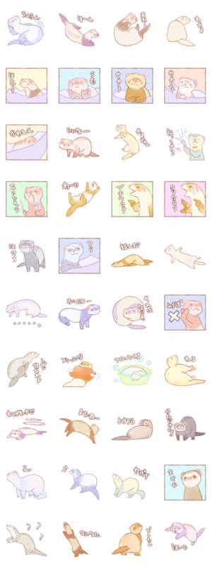 フェレットが適当に相槌を打つスタンプです。そっけない生返事をやわらかく出来たらなと思って作りました。ツネ トワコ より発売