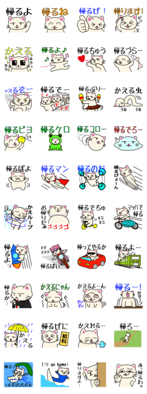 毎日の帰りの連絡。変化をつけたいが迷ってしまう。そんな悩みはこのスタンプで解決!帰る連絡を40パターン揃えました。かずにゃんスタンプ第2弾。かずにゃん より発売