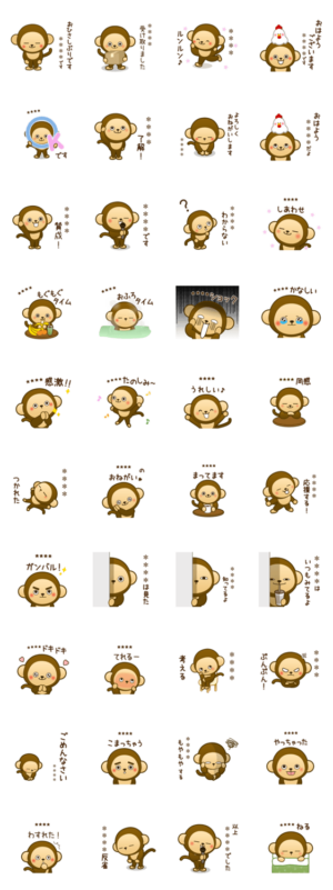 日常で使えるサルの便利なカスタムスタンプ登場!猿のスタンプ第12弾☆購入後もテキストは何度でも変更できるよ☆