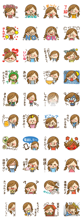 デフォルメされたかわいい主婦のスタンプです。元気でにぎやかなスタンプをラインに飾ってトークを盛り上げましょう。