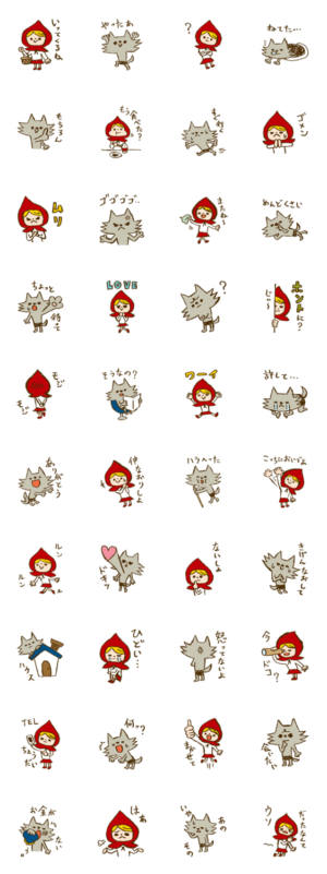 赤ずきんとオオカミは実は恋人だった? 特に恋愛している人たちに使っていただきたいスタンプです。カナヘインズ より発売