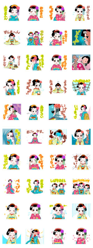 京都に修学旅行、卒業旅行、家族旅行、デートに行く時に舞妓スタンプを使ってLINEトークを盛り上げよう♪sam より発売