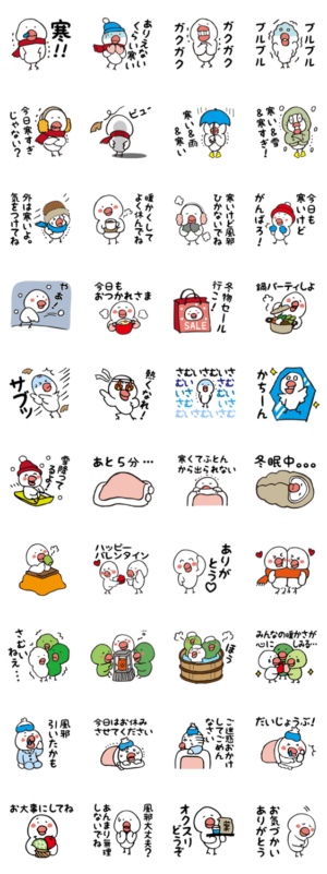 白ひよこの【ひよやん】スタンプ第3弾。寒い日、雨の日、雪の日、風邪をひいた日に使えるスタンプです!{企画小うさ、イラスト紗貴子}うらら より発売