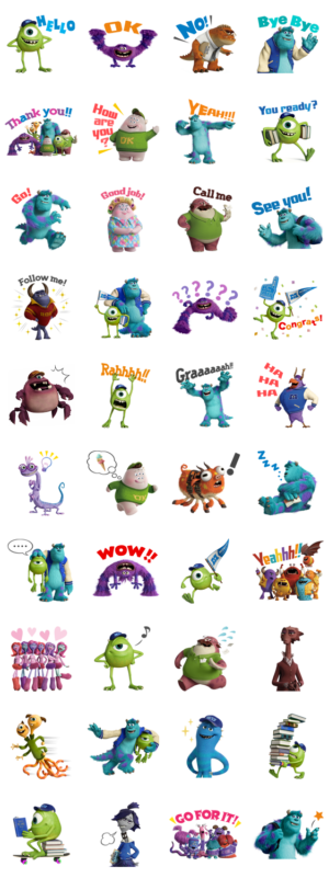 モンスターズインクなどの可愛らしいキャラクターのスタンプはイラスト系のスタンプが多いイメージだったが、このスタンプは立体感があり、映画のようなスタンプでモンスターズインクが好きな人にはとても良いスタンプだと感じました。