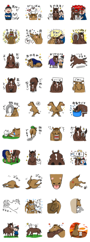 馬が好き!サラブレッドが好き!そんなあなたへ!!お馬さんと牧場の仲間たちの日常をスタンプにしてみました。あいぷらん より発売