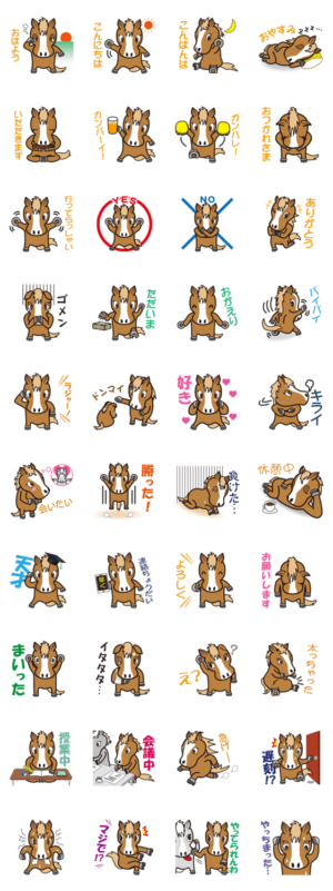 馬のオリジナルキャラクター「馬〜くん」のスタンプです。「馬〜くん」でメッセージをかわいく装飾しましょう♪