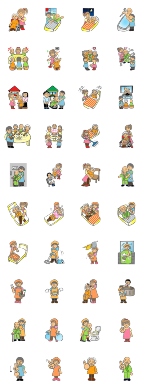 介護の日々や高齢者のお世話をする時に使えるスタンプです。ちょっとしたことを伝える時に使ってみて下さい!