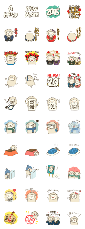 あけましておめでとうから卒業おめでとうまで。年賀状、お正月、成人式、バレンタイン、卒業など冬から春のイベントにつかえる羊スタンプのつめあわせです!株式会社スリーエムズ より発売