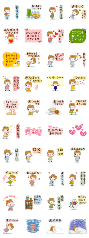 感謝の気持ちや気使いを、場面に応じて伝える、少し大人の使いやすいスタンプです。taemama より発売
