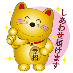 金の招き猫が、優しい言葉をかけてくれます。贈られた方々にたくさんの幸福が訪れますように…mzh48 より発売
