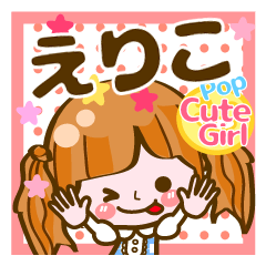 【えりこ】名前/ちゃん/あだ名。エリコ、Eriko、恵理子等❤Popなキュート ガール(Cute Girl)シリーズ 3【❤よく使う】言葉で名前スタンプ登場!❤探【○○○usa】作:usakazu
