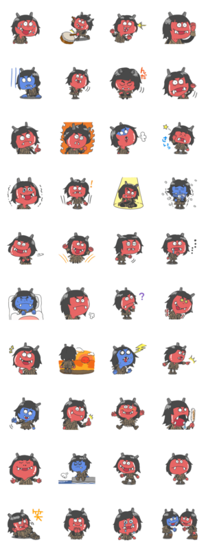 ご当地シリーズ東北・秋田県。まだ天真爛漫だった頃のなまはげ少年。ゆるい系使えるスタンプ。カメ計画 より発売