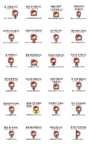 バイリンガル長文韓国語・日本語ルビ付き スタンプ画像一覧
