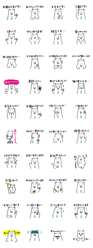 仕事・アルバイト・部活動で、先輩や同僚、上司等とのトークに使える可愛いシロクマくんのスタンプ。オシャレで愛嬌のあるしろくま君が毎日のお仕事を和ませてくれます。株式会社セブンスランク より発売