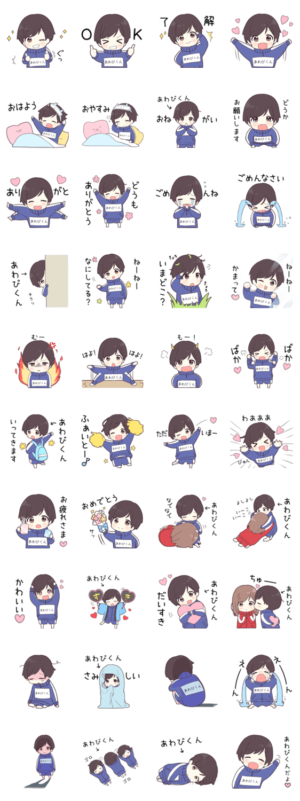 あわびくん専用のスタンプ第2弾です。ジャージのゼッケンに「あわびくん」の名前が入っています。