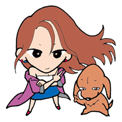 人気クルマ雑誌でマンガ連載中の作者のオリジナルキャラクター第二弾、女の子バージョン、赤毛のミニチュアダックスとコンビです。