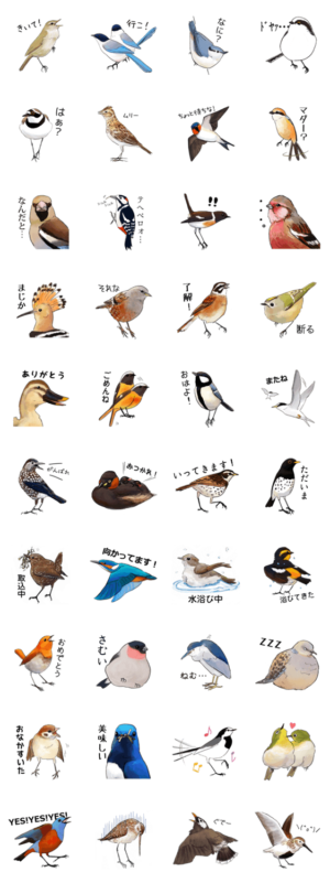 鳥好きによる鳥好きのためのスタンプです。piro piro piccolo(つぐみ) より発売
