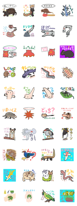 へんてこでもカワイイ生き物たちのスタンプ スタンプ情報