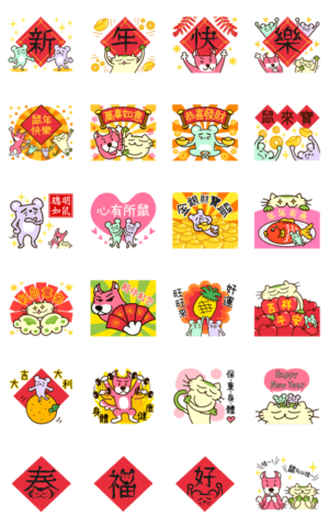 モチャとジャッキーの中国語〜春節の鼠年〜 スタンプ画像一覧