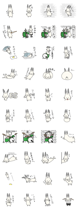 ドラマー一家に飼われているうさぎのスタンプ。時々ドラムを叩きます。クノヨウヘイ より発売