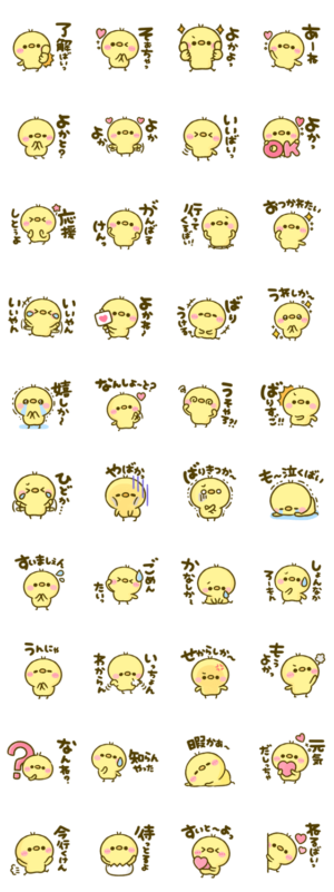 ぴよたぬ方言 ♡ 九州地方、福岡県の方言を使った可愛いひよこのスタンプです。ぴよたぬき! より発売