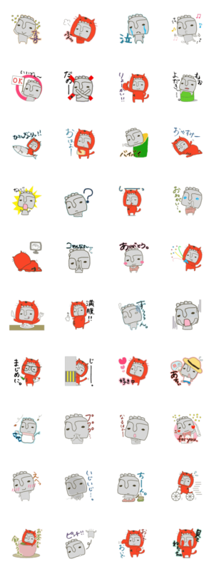国宝臼杵石仏と温泉のHOT、温泉に浸かって「ほっとする」をイメージした「ほっとさん」のスタンプです。大分の県民性を表す“赤猫”をかぶったほっとさんも登場します。大分県臼杵市(うすきし) より発売