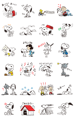 スヌーピーの動くスタンプです。にぎやかな仕草のスタンプをラインに飾ってトークを盛り上げましょう!