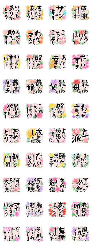 感謝・お祝い・応援~花のたおやか筆文字2 スタンプ情報