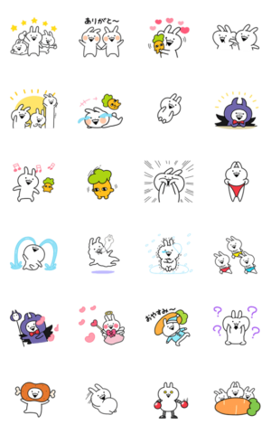 元気いっぱい!!! うさぎゅーんの動くスタンプ第5弾!!!!!!! わいわいしたり、コロコロしたり、踊ったり!!!!!!!! ニンジンのような子も仲間入り!!!!!!!!くおん より発売