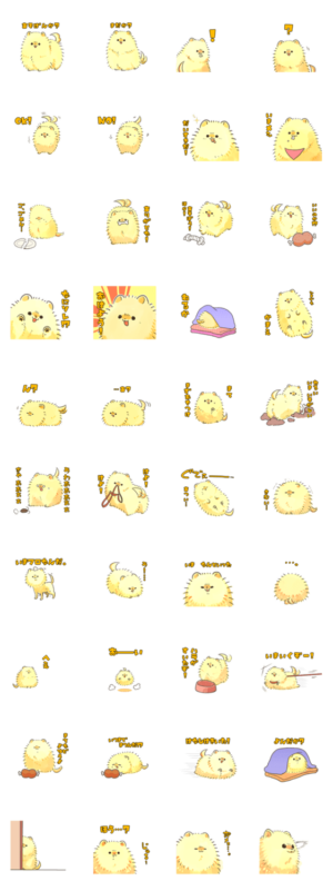 黄色い毛玉のポメラニアンのスタンプです高良 より発売