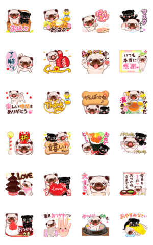 可愛く動く♡冬から春に使える 犬のパグのスタンプです♪ありがとうや応援、バレンタインやお祝い事など、気持ちを伝えたい時にも オススメです♪|作: ラブリーダムstudio LOVEREEDOM より発売
