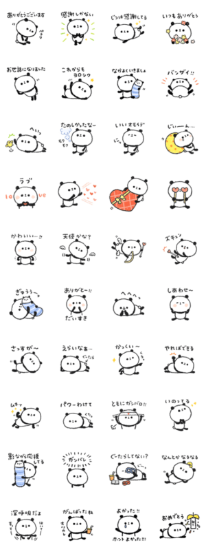 だらだらっとした、ゆるーいパンダのスタンプその3です。日頃の感謝や応援など、色んな気持ちをパンダが伝えます。卒業・受験・バレンタインにも♪