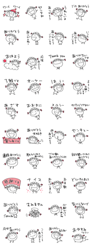くるりんとした髪に赤いリボンの女の子。今回はありがとう編。「ありがとうございます」「感謝です」から「おおきに」まで。日頃のありがとうを、くるリボンで伝えよう。Mami / エストループ より発売