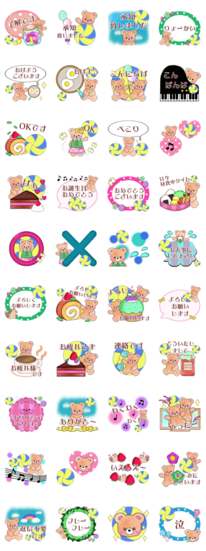 大人敬語/丁寧語/くま/ケーキ/スイーツ/ほんわかかわいいお花畑スタンプ/承認致しました/了解です/ありがとう/お願いします/お大事にして下さい/バレーボール/ドッジボール