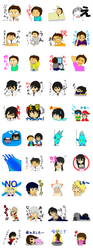 霜月灯夜が創り出した作品軍のキャラクターたちがついにスタンプ化!勘違い恋愛伝説KANCHIの勘違い男子高校生「かんち」こと奥村翔と、親友の中沢健がスタンプで大暴れ!!霜月灯夜 より発売