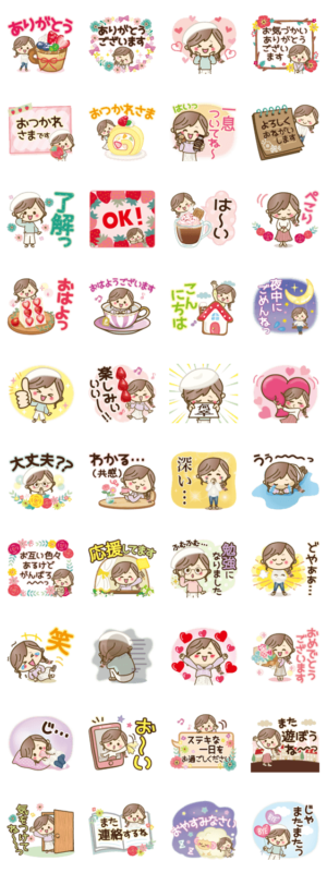 ふんわり心優しいナチュラルガール♪日常よく使う挨拶から優しい気づかい、言葉にしづらい感情まで心に寄り添ったスタンプです。お花,スイーツetcトークが和みますように♡